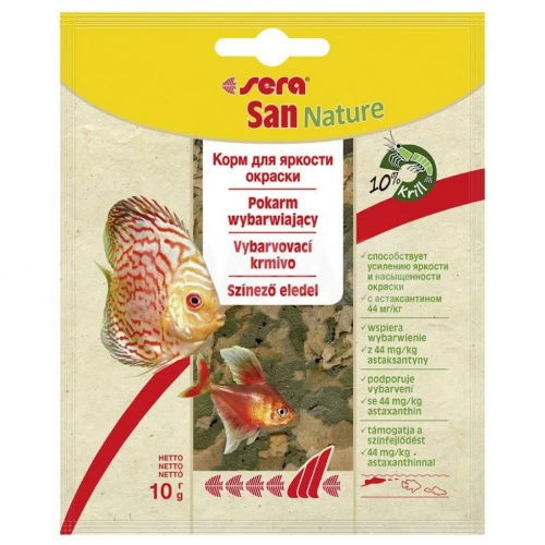 Sera San Nature — збалансований корм для всіх видів акваріумних риб для покращення забарвлення.